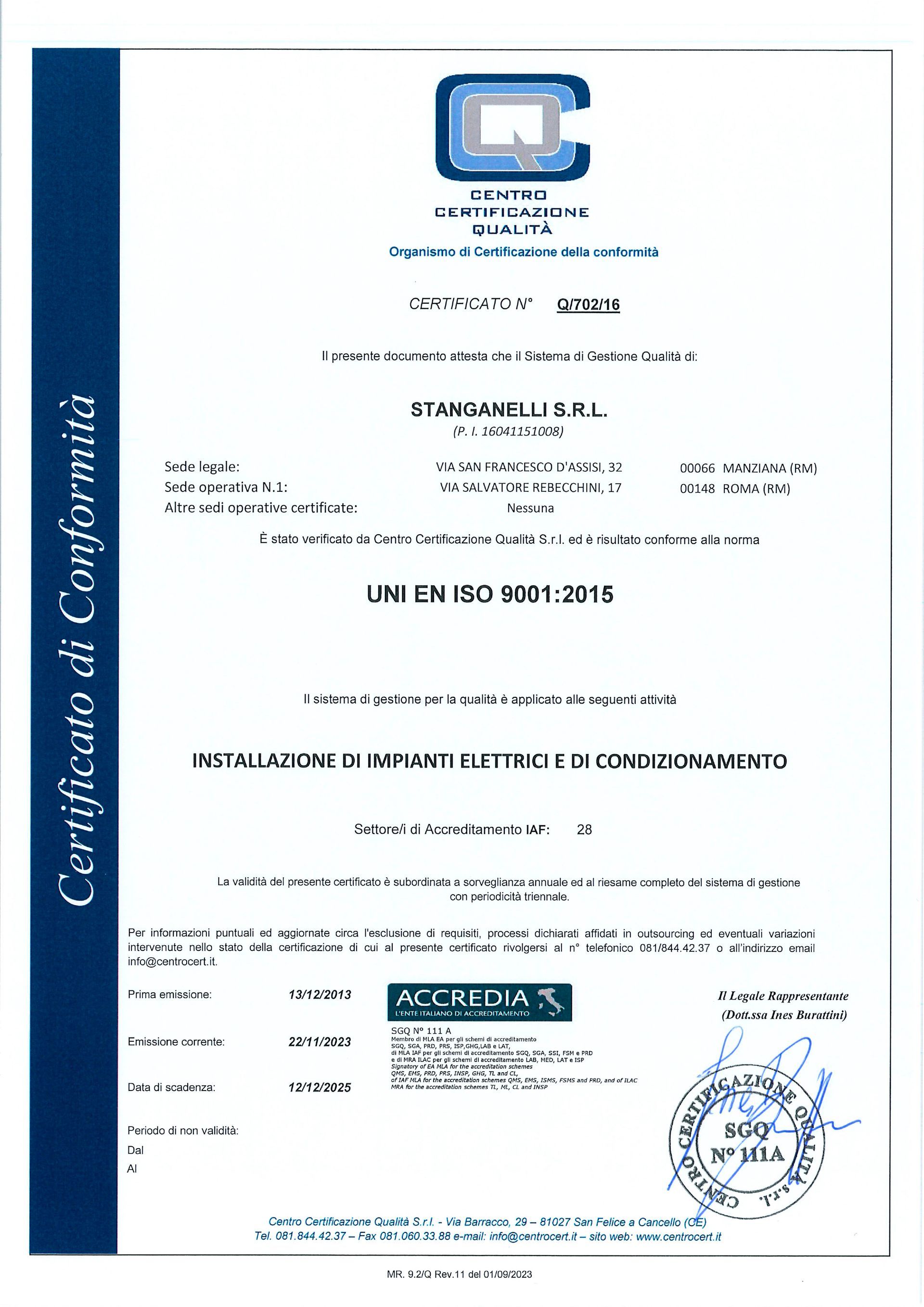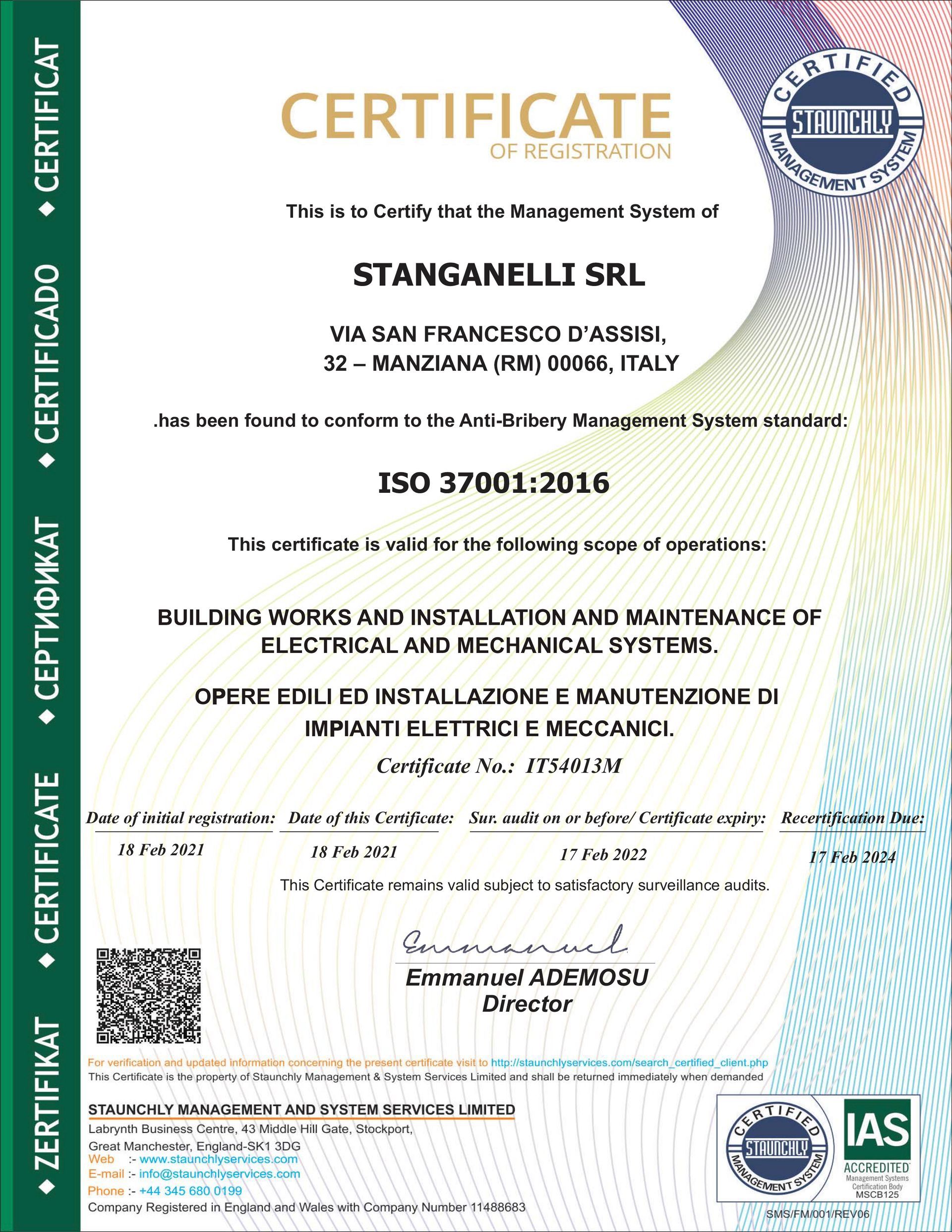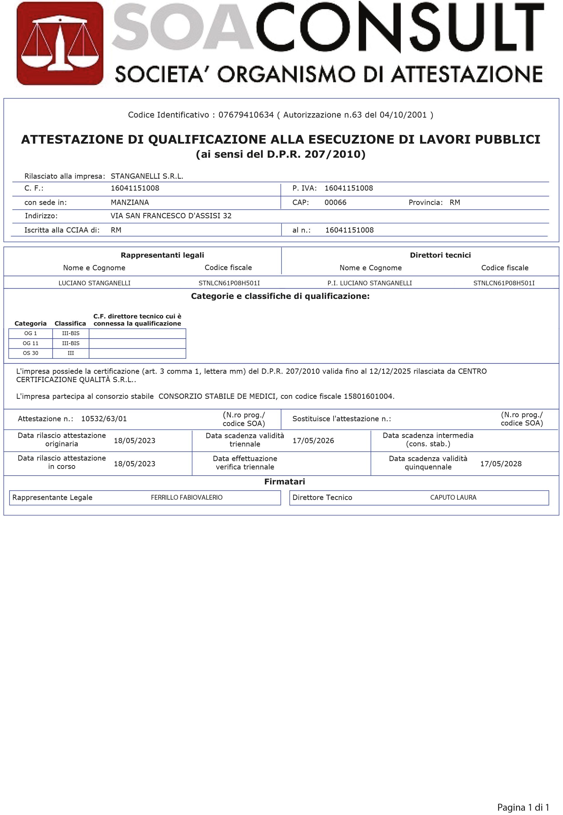 Impostando una politica aziendale sui valori del miglioramento professionale la STANGANELLI S.r.l. ha investito sulla formazione e valorizzazione delle proprie risorse, acquisendo le più importanti certificazioni e classificazioni SOA