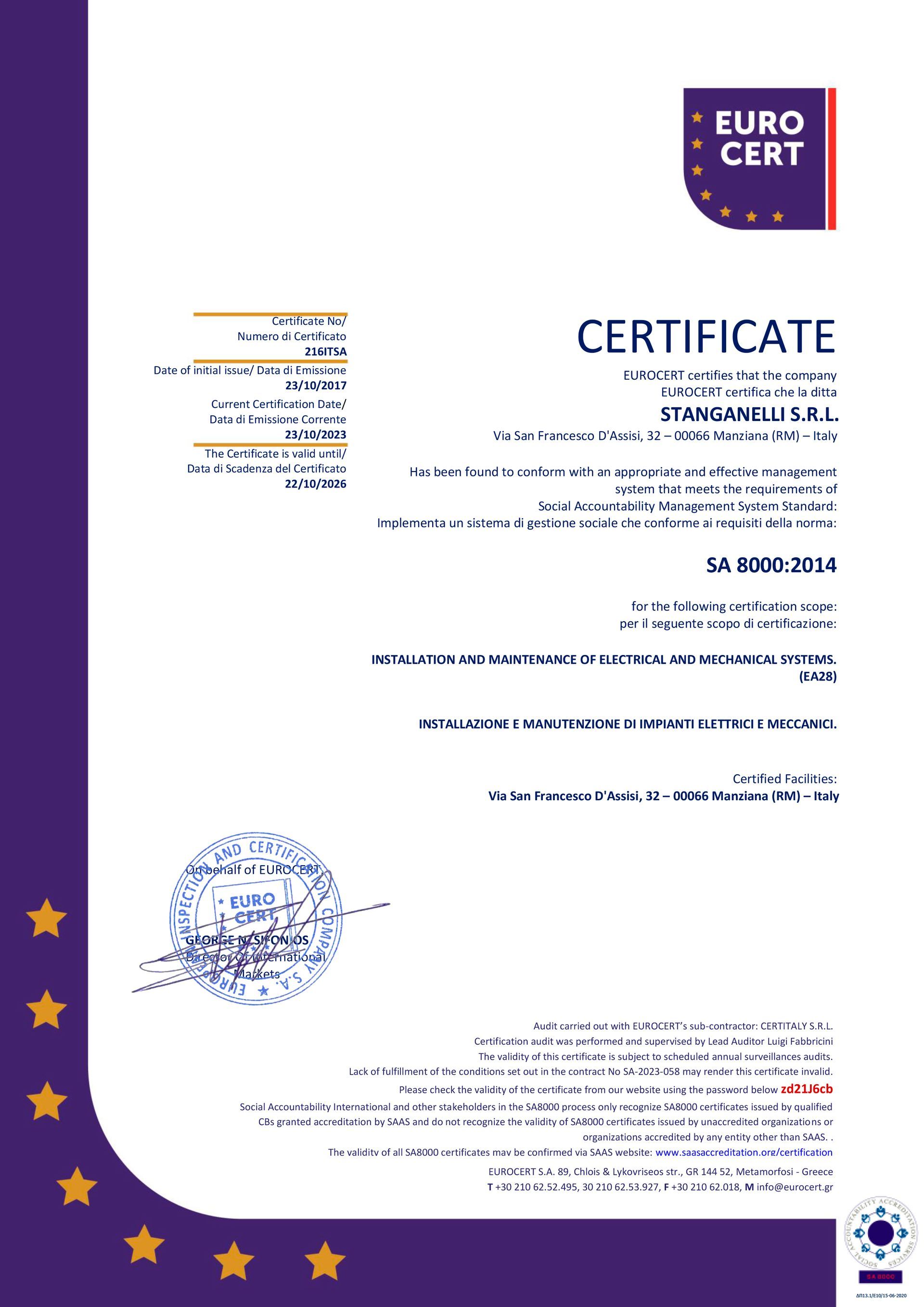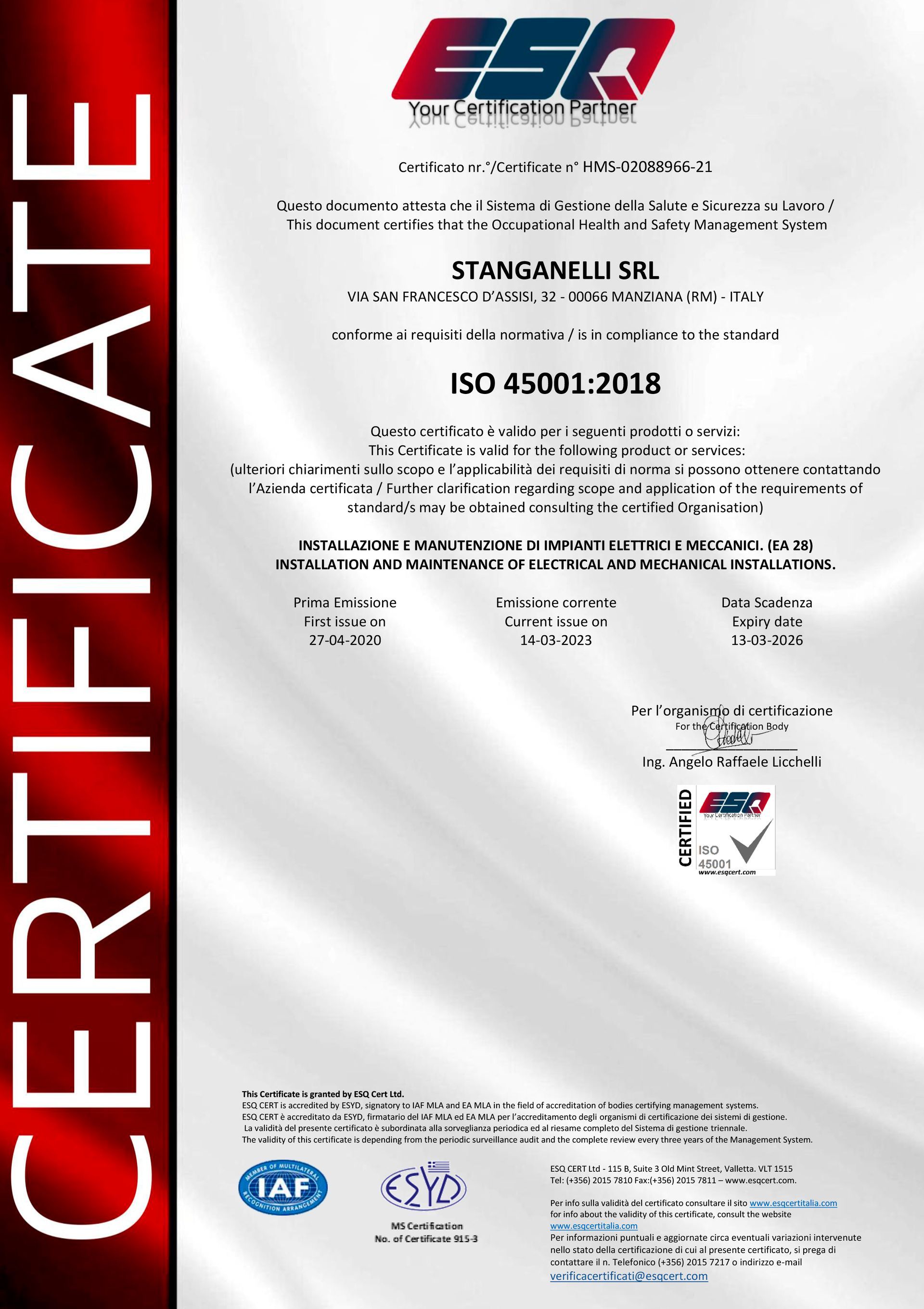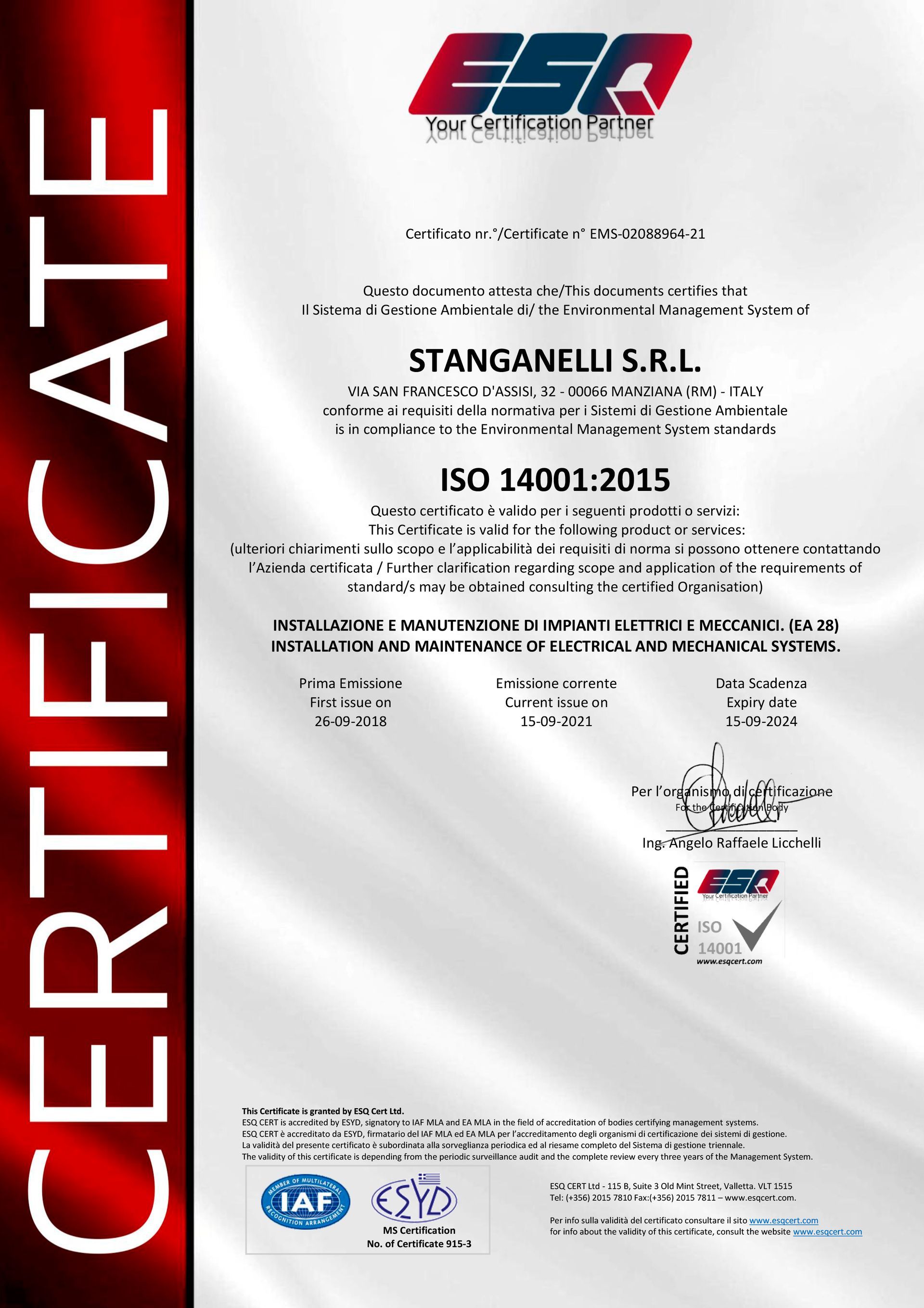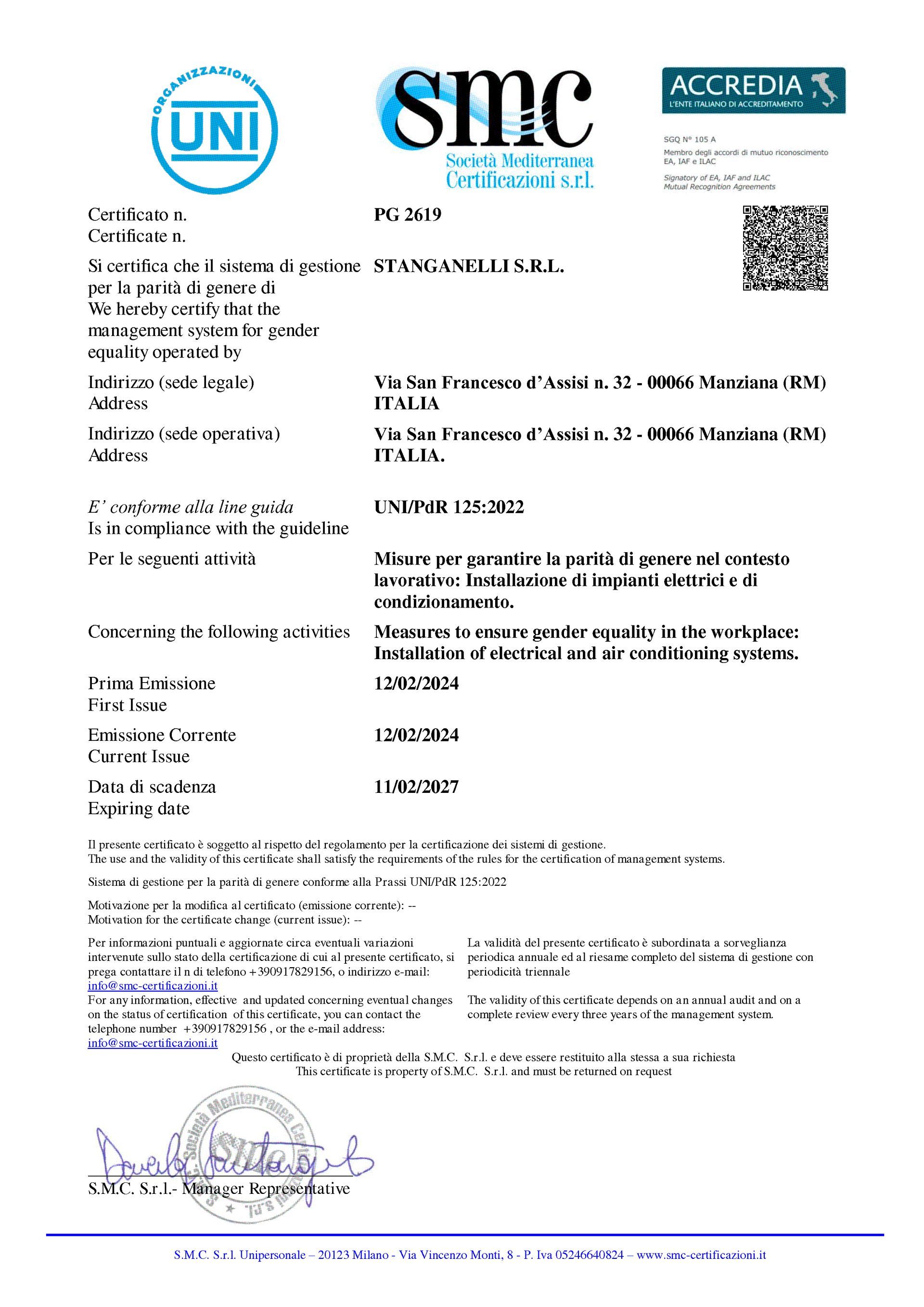 Impostando una politica aziendale sui valori del miglioramento professionale la STANGANELLI S.r.l. ha investito sulla formazione e valorizzazione delle proprie risorse, acquisendo le più importanti certificazioni e classificazioni SOA